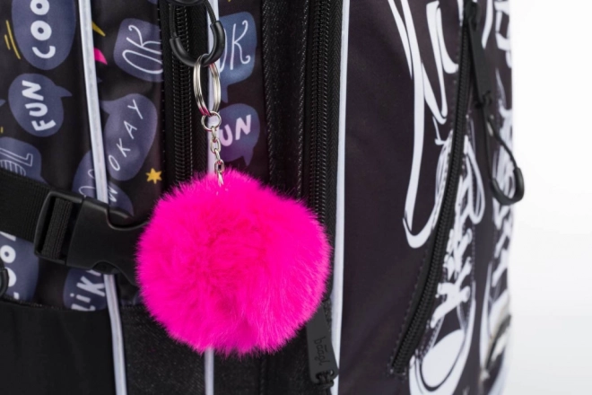 Tři samostatné komory s vnitřním organizérem pomohou udržet pořádek a rovnoměrně rozložit hmotnost. Nechybí polstrovaná kapsa na 15" notebook či tablet, přední organizér s odnímatelným poutkem s karabinou na klíče a vyztužená tajná kapsa ve spodní části. Elastické boční kapsy jsou ideální na láhev s pitím. Batoh je z pevného, voděodolného materiálu, doplněn o reflexní prvky a trendy chlupatý přívěsek.
