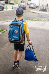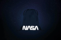 Modrý sáček na záda je vybaven výrazným logem NASA, které svítí ve tmě a zvyšuje viditelnost.