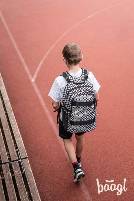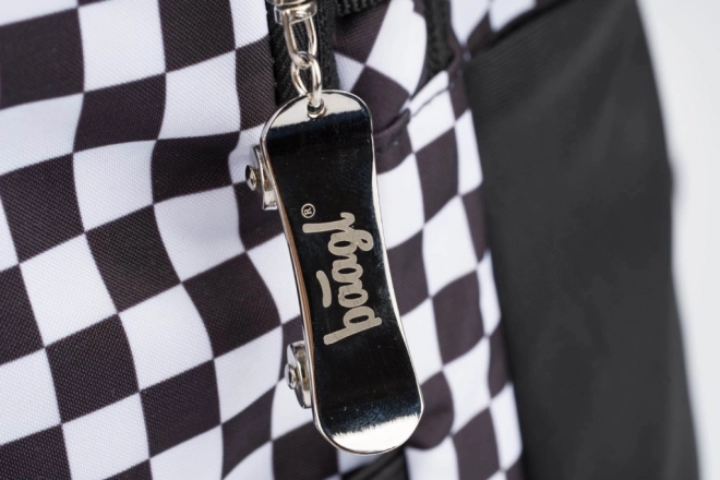 Černobílý šachovnicový vzor s reflexními prvky pro bezpečnost a bonusovým kovovým přívěškem.