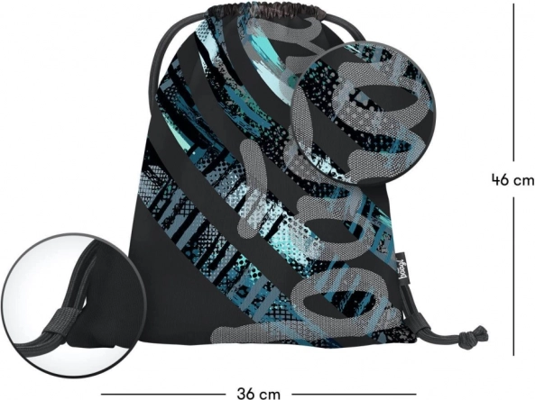 Vyberte si ideálního společníka pro vaše cvičky nebo přezůvky. Tento sáček vyniká svým moderním designem s diagonálními pruhy v černé, modré a šedé barvě, které dodají styl každému outfitu.
