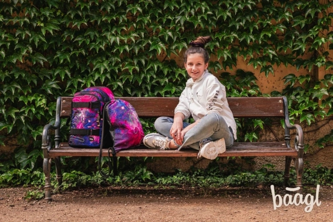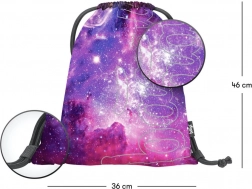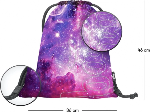 Sáček BAAGL Skate Galaxy je ideální volbou pro každodenní použití díky svému unikátnímu kosmickému designu v odstínech fialové a růžové, který připomíná galaxii. Svítící logo přidává stylový prvek, který zaujme na první pohled. Je vybaven pevnými tkanicemi pro bezpečné uzavření a pohodlné nošení na zádech.
