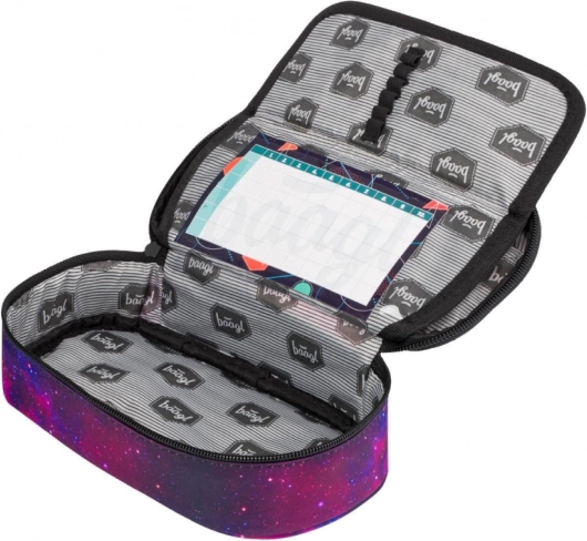 Praktický školní penál s motivem galaxie od značky Baagl, ideální pro efektivní organizaci školních potřeb. Stylový a funkční design pro každodenní použití.