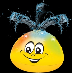 Tato dětská fontánka o průměru 10 cm se aktivuje kontaktrem s vodou – stačí ji položit na hladinu ve vaně nebo bazénu a rázem se rozsvítí a vytvoří jemný vodní gejzír. Zářivě žluté provedení a usměvavý obličej podněcují dětskou fantazii a podporují smyslové vnímání.