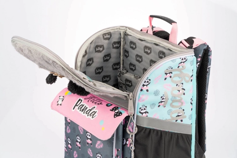 Školní aktovka BAAGL Zippy Panda je navržena pro 1.–2. třídu ZŠ. Nabízí vyztužené tělo, promyšlené členění vnitřního prostoru a nový vyklápěcí systém, se kterým se školák snadno dostane ke všem pomůckám přímo z lavice. Díky posuvnému systému ERGO ADJUSTABLE SYSTEM lze popruhy přesně nastavit podle výšky dítěte, takže batoh pohodlně sedí po celý den.