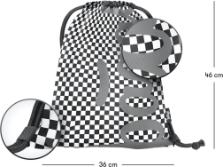 Praktický školní sáček na přezůvky či cvičky s motivem Skate Ska od značky Baagl. Nabízí pevný omyvatelný materiál, svítící logo ve tmě a pohodlné stahování tkanicemi, které umožňují nošení na zádech.