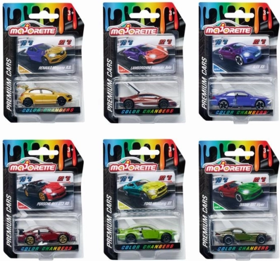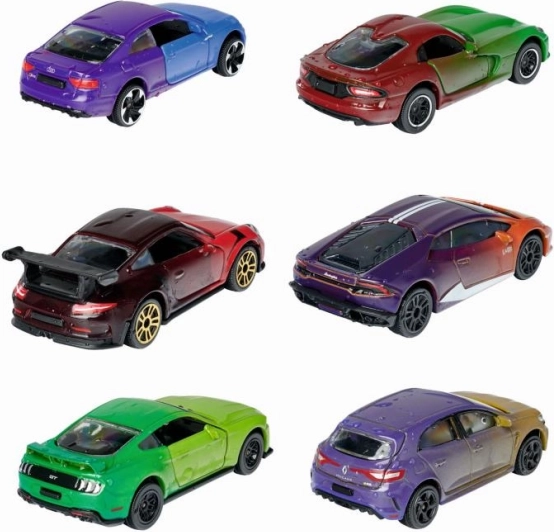 Tato detailně zpracovaná autíčka přinášejí jedinečný efekt Color Changers: při ochlazení na cca 10 °C změní barvu a po zahřátí na přibližně 22 °C se vrátí k původnímu odstínu. Každý model je vyroben z kovu s plastovými doplňky, má volnoběh, otevírací části a odpružená kola pro plynulejší jízdu.