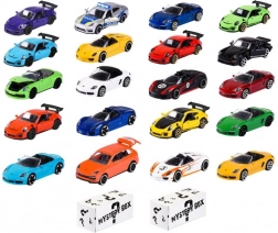 Objevte svět ikonických vozů Porsche v jedné unikátní kolekci. Sada obsahuje 20 různých modelů napříč kategoriemi a 2 exkluzivní tajemná vozidla ve speciální krabici. Kovová autíčka v měřítku 1:64 (cca 7,5 cm) mají otočná kola, funkční zavěšení a kloubové části pro ještě realističtější zážitek ze hry i vystavení.