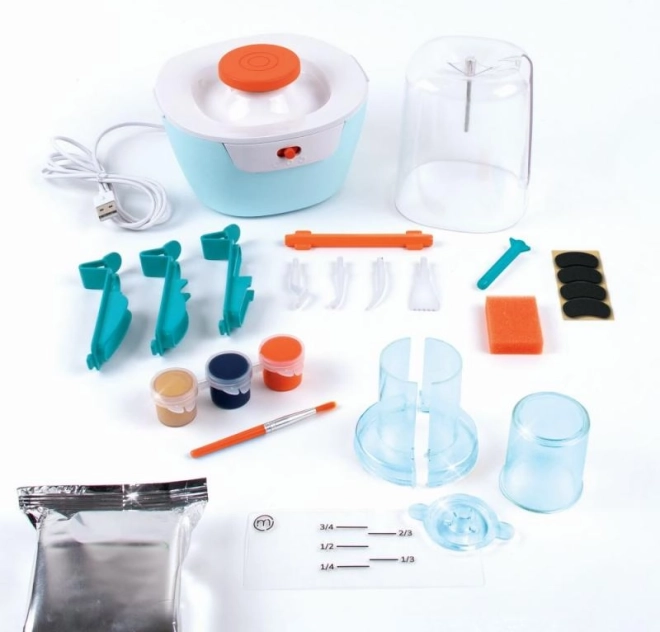 Vše potřebné pro tvorbu keramických výrobků je součástí balení, což umožňuje okamžité použití a zábavu.
