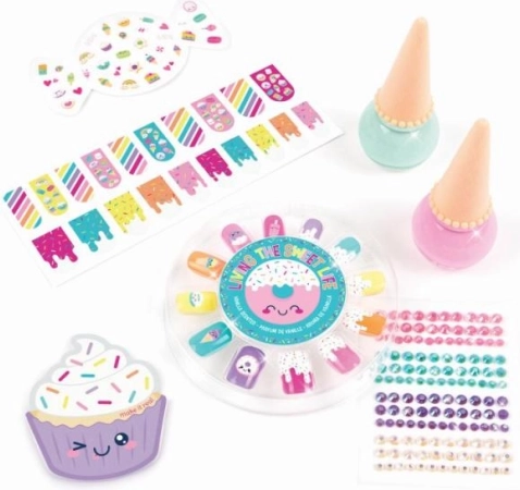 Set na nehty Candy je perfektní volbou pro mladé kreativce, kteří chtějí doladit svůj osobní styl. Obsahuje dva laky na nehty ve tvaru zmrzliny, které jsou na vodní bázi a snadno se odstraňují teplou vodou a mýdlem. Tento set je doplněn mnoha barevnými samolepkami a dekoracemi, které umožňují vytvořit originální a hravý vzhled nehtů.