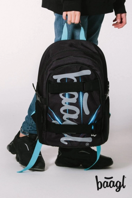 Školní batoh Baagl Skate Bluelight je ideální volbou pro každodenní nošení do školy či na volný čas. S třemi samostatně uzavíratelnými komorami, vnitřním organizérem a kapsou na 15palcový notebook či tablet nabízí tento batoh dostatek prostoru pro veškeré školní pomůcky.