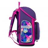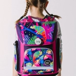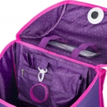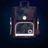 Uvnitř najdete přehledný organizér pro rovnoměrné rozložení hmotnosti, průhlednou kapsu s rozvrhem a prostorné komory pro učebnice a sešity. Izolovaná přední kapsa je ideální na svačinu, dvě boční kapsy pohodlně pojmou láhev na pití. Lehká vyztužená konstrukce s pevným dnem drží tvar, voděodolný materiál chrání obsah a reflexní prvky zvyšují viditelnost dítěte.