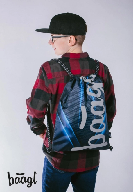 Praktický šňůrkový sáček BAAGL pro každodenní nošení do školy i na sport. Vyroben z pevného omyvatelného materiálu, se svítícím logem ve tmě a odolnými tkanicemi pro pohodlné nošení na zádech.