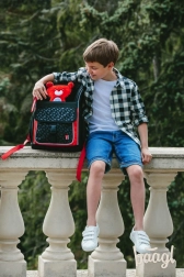Nový vyklápěcí systém otevírání usnadňuje přístup k sešitům a učebnicím přímo z lavice. Uvnitř najdete organizér s gumičkou pro rovnoměrné rozložení hmotnosti a průhlednou kapsu s rozvrhem. Boční síťované kapsy pojmou láhev na pití, izolovaná přední kapsa na přezku zase menší svačinu či drobnosti.