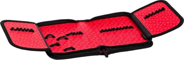 Vnitřní chlopně s elastickými poutky udrží tužky, pastelky i další pomůcky dokonale srovnané a vždy po ruce.