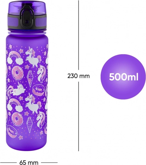 Láhev je zdobena rozkošnými motivy jednorožců, které ocení každé dítě. Kombinuje hravý vzhled se svěžími barvami.