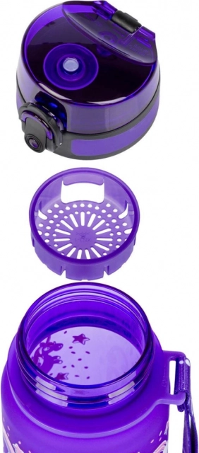 Užijte si maximální pohodlí a bezpečnost s touto láhví na pití. Vyrobena z kvalitního tritanového materiálu, který je bez zápachu a bez škodlivých látek jako je BPA, PVC nebo ftaláty, láhev je vhodná i pro horké nápoje, díky integrovanému sítku na ovocnou limonádu nebo čaj. Praktické uzamykatelné víčko zabrání úniku tekutiny, zatímco poutko umožní snadné přenášení. To vše v atraktivním designu s barevnými motivem jednorožce, který zaujme každého školáka.