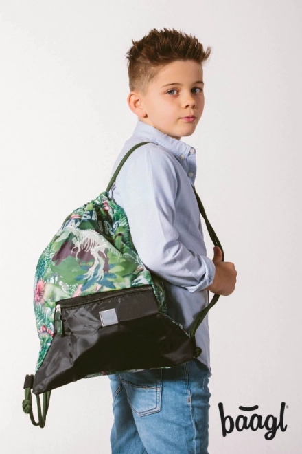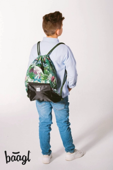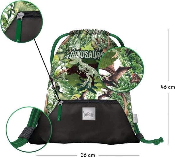 Sáček na přezůvky BAAGL Dinosaurs vyniká nejen svým výrazným designem, ale také praktickými funkčními prvky. Vyroben z pevného a omyvatelného materiálu, který zajišťuje dlouhou životnost. V dolní části naleznete kapsu na zip, ideální pro drobné předměty. Zdrhování pomocí pevných tkanic umožňuje pohodlné nošení na zádech.