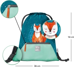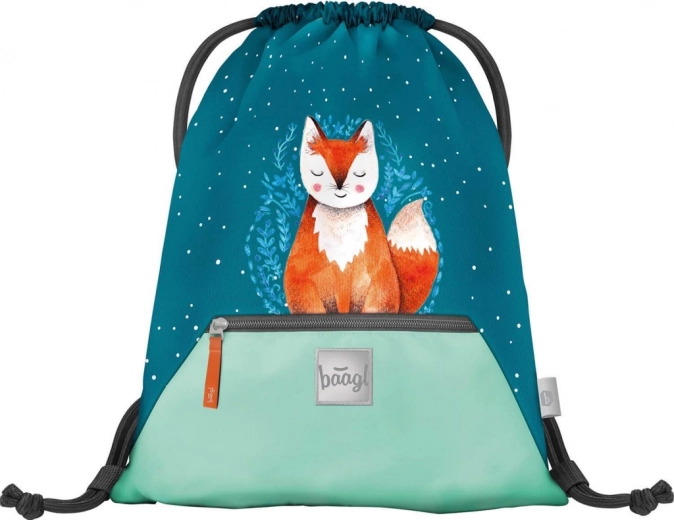 Praktický sáček na obuv a drobnosti s motivem lišky od značky BAAGL. Vyroben z pevného omyvatelného materiálu, se spodní kapsou na zip a stahováním pomocí pevných tkanic, které umožňují pohodlné nošení na zádech.