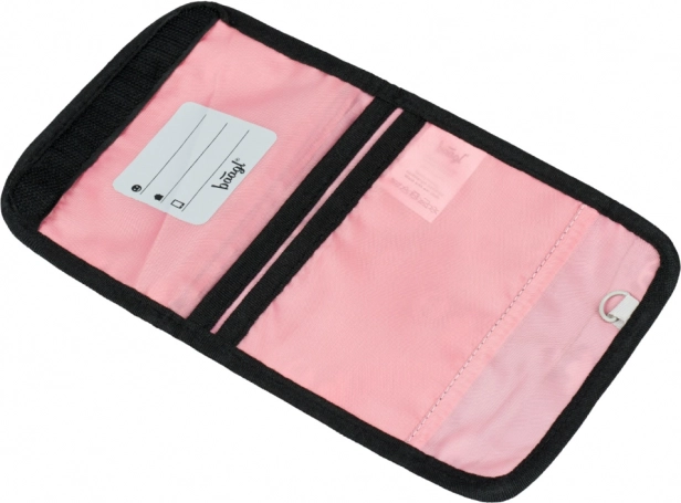 Součástí je šňůrka na krk pro bezpečné nošení, zipová kapsička na drobné a více přihrádek pro přehlednou organizaci. Uvnitř najdete i kroužek na klíče a místo pro jmenovku, takže se peněženka snadno identifikuje.