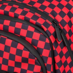 Stylový školní set BAAGL Skate TERIBEAR v červeno‑černém kostkovaném designu zahrnuje prostorný batoh, praktický penál a odolný sáček. Batoh nabízí 3 komory s organizérem a kapsu na 15" notebook, má ergonomicky tvarovaná záda, plně nastavitelné popruhy a popruhy na skateboard. Set doplňuje lehké provedení, reflexní prvky a kvalitní voděodolné materiály.