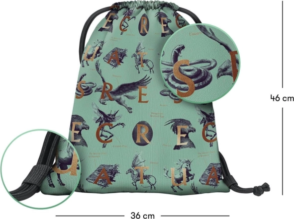 Sáček na obuv nebo drobnosti s motivem Harry Potter Fantastická zvířata je ideální pro vaše volnočasové aktivity. Je vyroben z pevného a omyvatelného materiálu a lze jej pohodlně nosit na zádech.