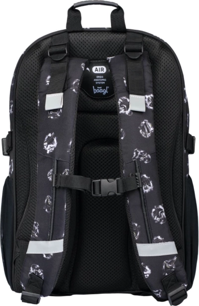 Batoh je vyroben z pevného voděodolného materiálu a obsahuje reflexní prvky pro bezpečnost.