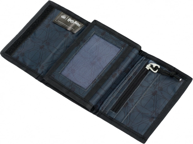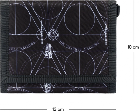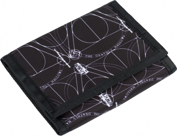 Peněženka je zdobená motivem Relikvie smrti, což je neodolatelným lákadlem pro fanoušky kouzelnické série.