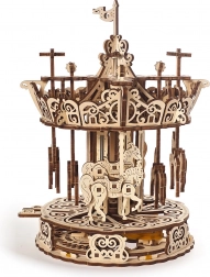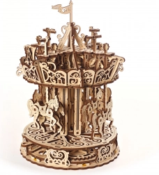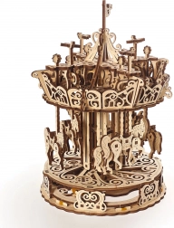 Ornamentální laserové gravury, přírodní dřevo a klasický motiv kolotoče z něj dělají poutavou ozdobu vitríny či dětského pokoje.