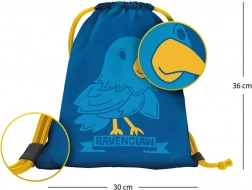 Modrý pytlík je zdobený grafikou havrana a nápisem 'Ravenclaw', což potěší každého fanouška Harryho Pottera.