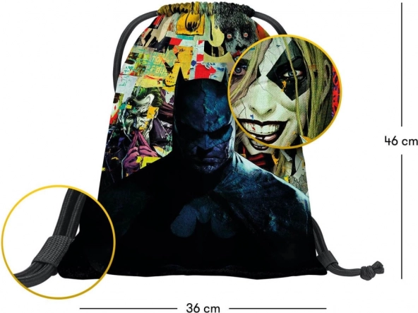Sáček je opatřen fascinujícím grafickým designem s intenzivní ilustrací Batmana a pestrými postavami a symboly.