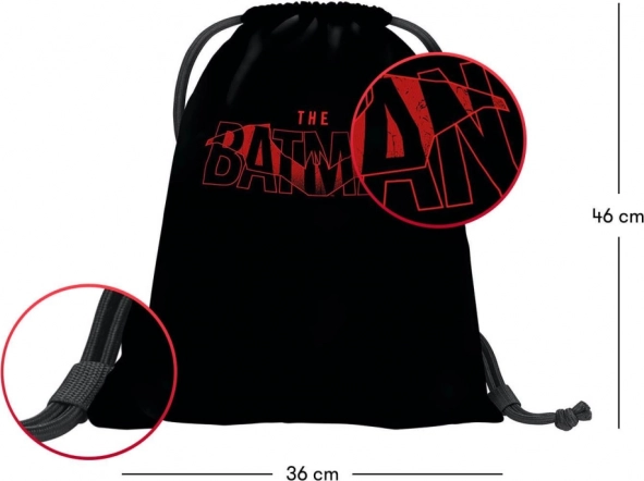 Batoh je ozdoben výrazným červeným logem The Batman, který osloví všechny fanoušky temného rytíře.