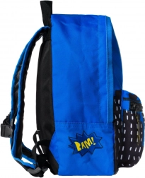 Batoh je zdoben ikonickým logem Batmana a městskými siluetami, které zaujmou každého fanouška.