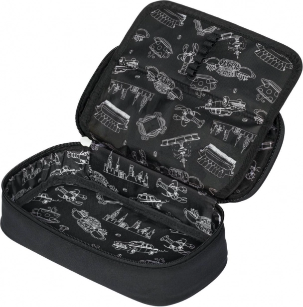 Tento školní penál v černé barvě je nejen praktickým, ale i stylovým doplňkem pro každého fanouška legendárního seriálu Friends. S logem Central Perk vás bude doprovázet každý školní den. Vyroben z kvalitního textilního materiálu, penál nabízí dostatek prostoru pro všechny vaše školní potřeby.