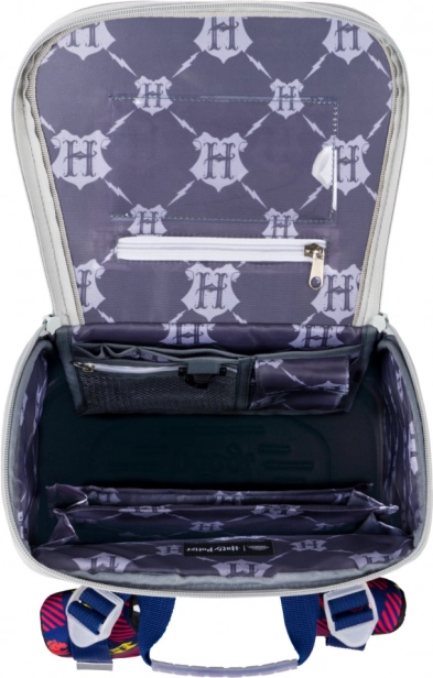 Stylový školní set pro malé fanoušky HARRY POTTER: ergonomická aktovka Zippy s posuvným systémem ERGO ADJUSTABLE SYSTEM, klasický penál a praktický sáček na záda. Aktovka nabízí vyklápěcí systém pro snadný přístup, promyšlenou organizaci, boční kapsy na láhev, izolovanou přední kapsu, lehkou konstrukci (1 100 g), objem 18 l, voděodolný materiál a reflexní prvky pro bezpečnost.