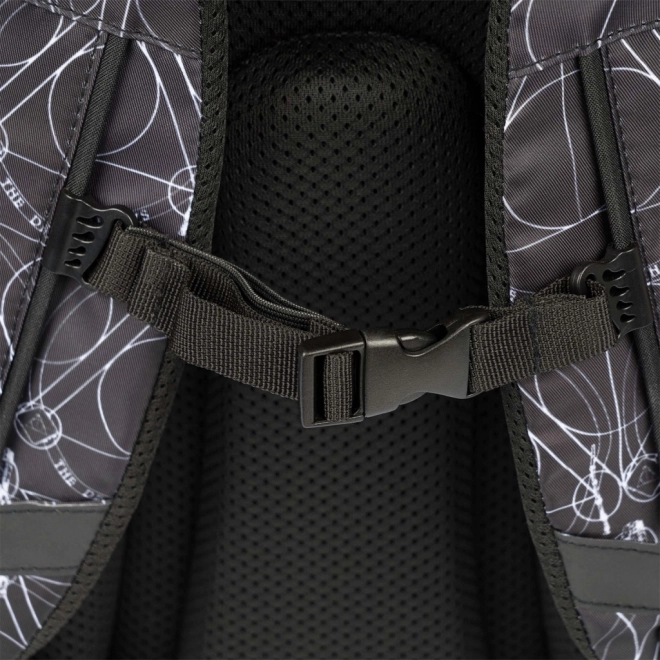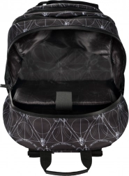 Dvě pevné přední popruhy umožní bezpečně uchytit skateboard. Moderní černo‑bílý design s motivem relikvií smrti a reflexní prvky zaručí, že budete vidět a vypadat skvěle.