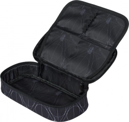Penál etue je pevný, s výklopnou vnitřní přepážkou, zipovou kapsou a kapsou na rozvrh (bez náplně). Sáček z odolného omyvatelného materiálu se stahuje pevnými tkanicemi, které zároveň slouží k nošení na zádech – ideální na obuv i volnočasové aktivity.