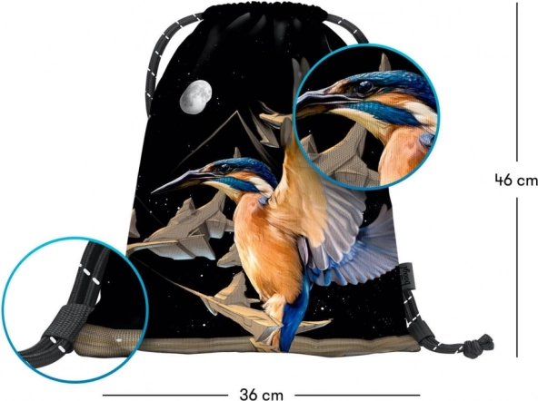 Díky univerzálním rozměrům se hodí na přezůvky, sportovní obuv, oblečení i drobnosti. Moderní motiv ledňáčka zaujme na první pohled a doladí váš outfit.