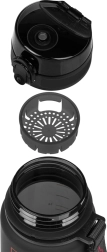 Uzamykatelné víčko s pojistkou brání nechtěnému otevření v batohu a flip-top mechanismus umožní rychlé pití jednou rukou. Odnímatelné sítko využijete pro ovocné limonády nebo sypané čaje – materiál je vhodný i pro horké nápoje. Součástí je poutko pro pohodlné nošení.