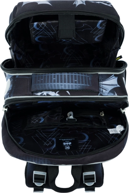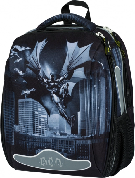 Lehká a stabilní školní aktovka pro prvňáčky i malé školáky s motivem BATMAN Dark City. Nabízí pevné vyztužené tělo pro maximální ochranu sešitů, dvoukomorové uspořádání pro přehledné nošení, prodyšná záda se systémem Air Ergo Adjustable a reflexní prvky pro bezpečnost. Nízká hmotnost jen 1000 g, objem 23 l a praktický organizér pro vše potřebné do školy.