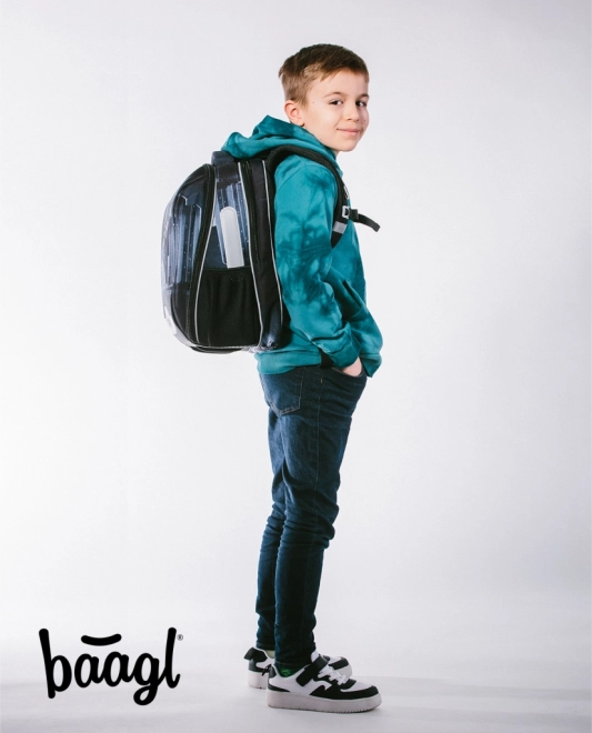 Ergonomicky tvarovaná, prodyšná záda a nastavitelné ramenní i prsní popruhy se přizpůsobí postavě školáka.