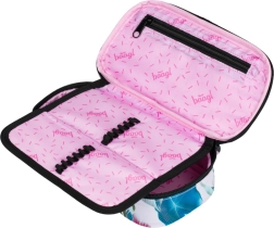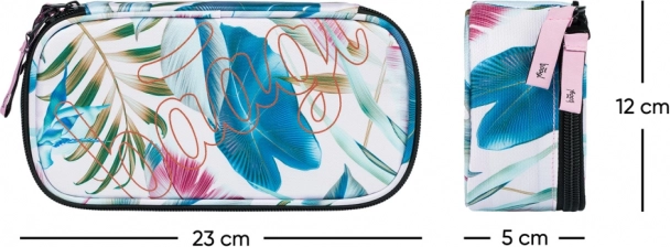 Součástí interiéru je také průhledná kapsa na rozvrh hodin, abyste měli přehled o školním dnu vždy po ruce. Penál je dodáván bez náplně, takže si jej můžete naplnit přesně podle svých potřeb. Odolný materiál a nadčasový vzhled s tropickým potiskem se skvěle hodí pro každodenní používání.