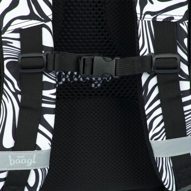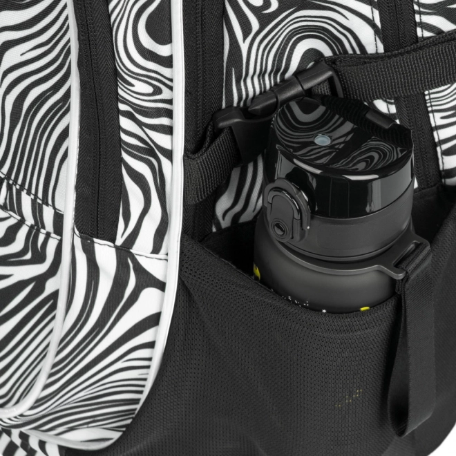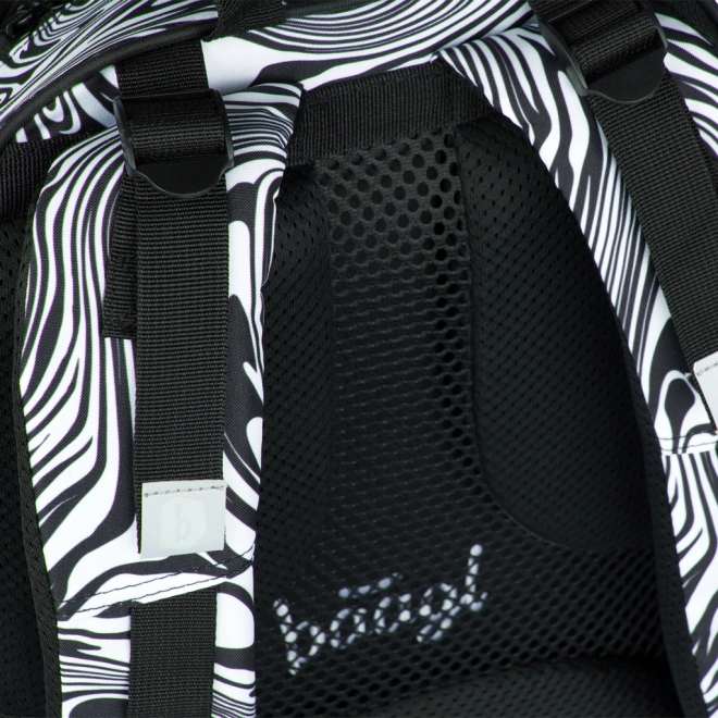 Stylový školní batoh BAAGL Core Mixture s černobílým vzorem nabízí ergonomická záda, nízkou hmotnost 900 g a tři komory s organizérem a kapsou na 15" notebook. Díky plně nastavitelným popruhům, bočním kapsám na láhev, voděodolnému materiálu a reflexním prvkům je ideální pro každodenní nošení do školy.