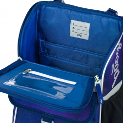 Nové vyklápěcí otevírání umožní dětem rychlý přístup k pomůckám přímo z lavice. Uvnitř nechybí průhledná kapsa na rozvrh a promyšlený organizér s gumičkou pro fixaci sešitů a učebnic. Boční kapsy z pevné síťoviny pojmou láhev na pití, zatímco izolovaná prostorná přední kapsa s přezkou ochrání svačinu.