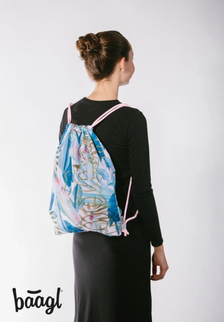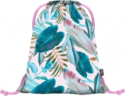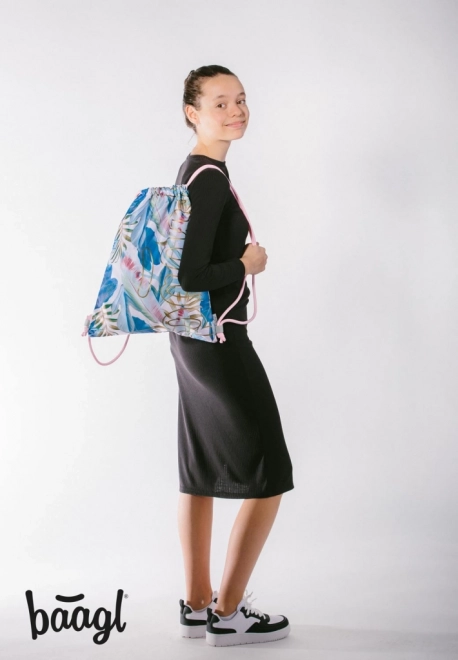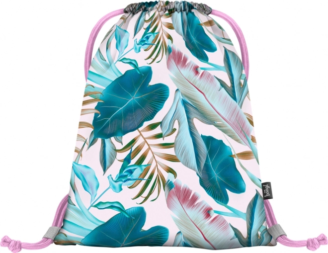 Oslnivý barevný vzor s motivem tropických listů dodává sáčku svěží a moderní vzhled.