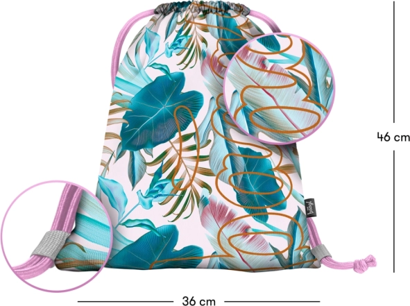 Objevte praktický a stylový sáček s pestrobarevným designem tropických listů, který je ideální jak na cvičky, tak na další drobné předměty. Tento sáček je vyroben z pevného a kvalitního textilního materiálu, který je snadno omyvatelný, což zaručuje jeho dlouhou životnost.