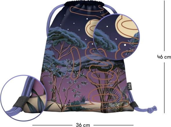 Objevte praktický a elegantní vak na záda s designem nočního lesa. Tento vak kombinuje estetiku s funkčností a pohodlím.