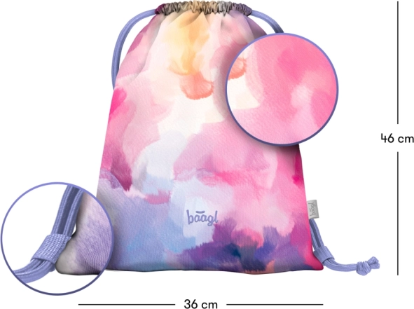 Tento sáček od značky BAAGL je ideálním řešením pro ukládání obuvi či jiných drobností během vašich volnočasových aktivit. Je vyroben z pevného materiálu, který je snadno omyvatelný, což zaručuje dlouhou životnost a snadnou údržbu.