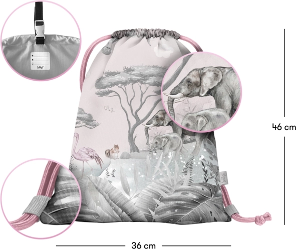 Univerzální sáček BAAGL Safari je ideální pro přenášení obuvi či drobností během volného času. Sáček lze snadno připevnit k aktovce díky praktické karabince a je vyroben z pevného omyvatelného materiálu.