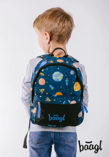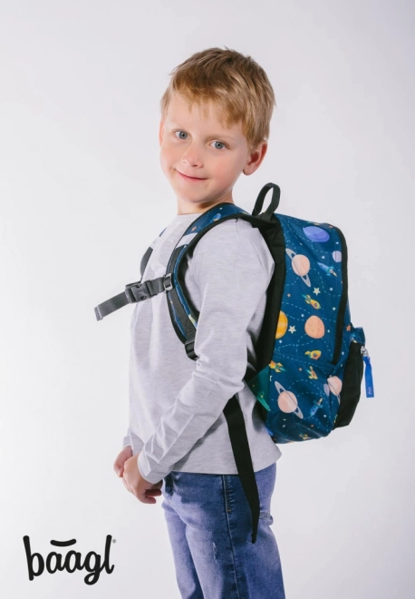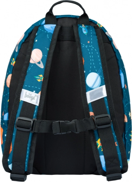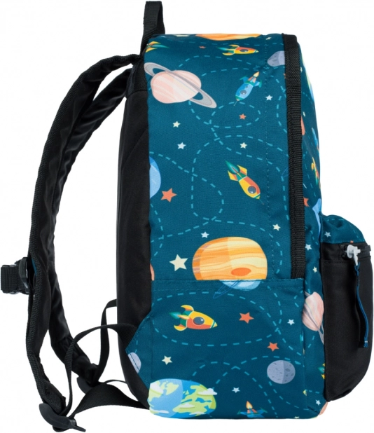 Okouzlující motiv planet a raket si děti zamilují. Hlavní komora pojme svačinu i oblíbenou hračku, přední zipová kapsa je ideální na drobnosti, kapesníčky či klíče.