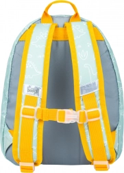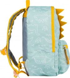Výrazný tyrkysový batoh s veselým dinosauřím potiskem a hravými detaily zaujme na první pohled a podpoří radost z každodenního nošení.